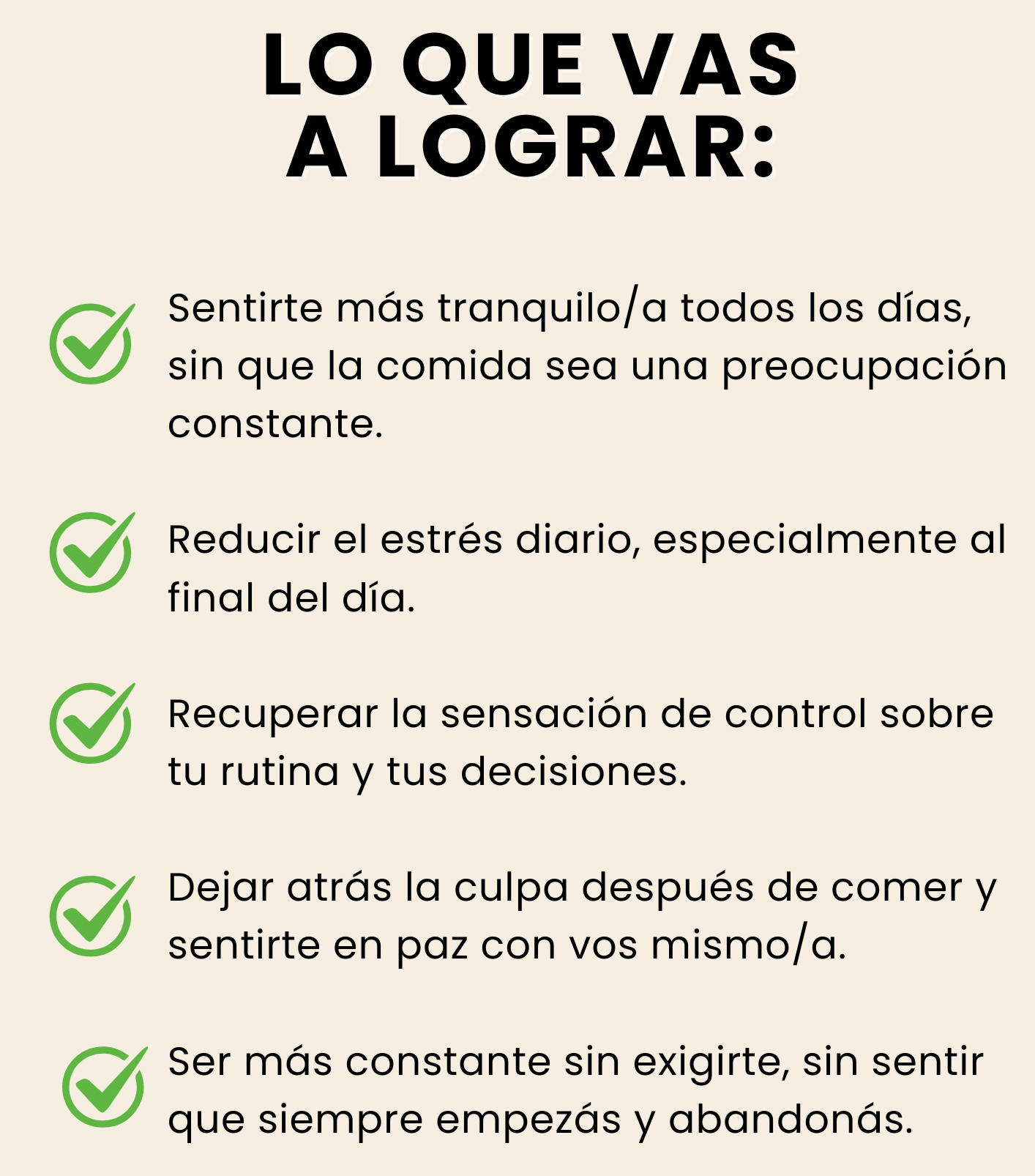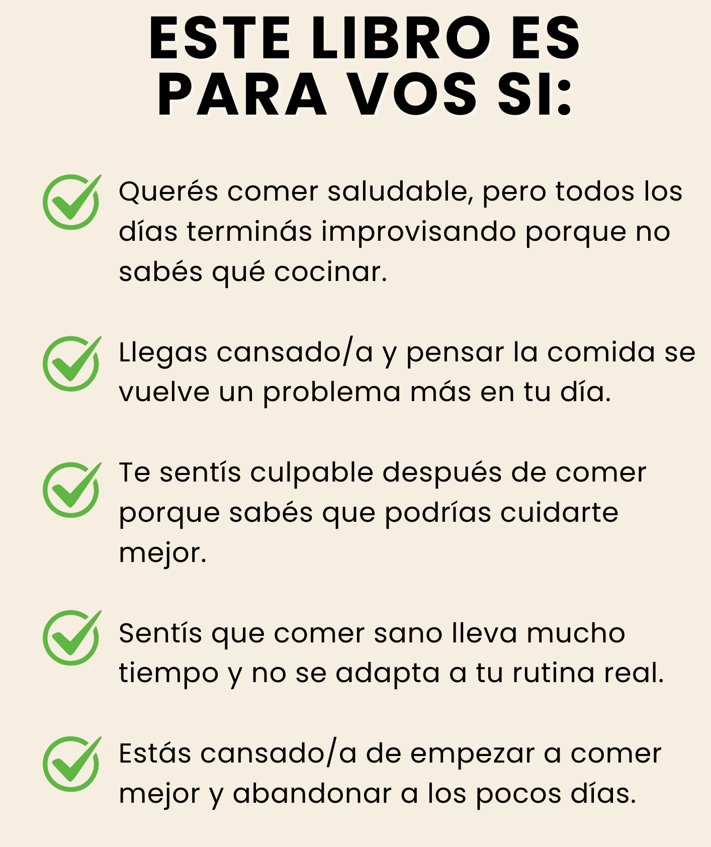 BONO 1 🎁– Planificador Semanal Anti-Caos Un plan simple para organizar tus comidas de la semana sin pensar de más, evitar improvisar y mantener constancia incluso en días caóticos. Menos estrés, más orden y mejores resultados. BONO 2🎁 – Bajar de Peso Sin Pasar Hambre Una guía práctica para aprender a comer lo justo y necesario, sentirte lleno/a, controlar porciones y bajar de peso de forma sostenida. Adelgazás sin sufrir ni vivir con antojos. BONO 3🎁 – Lista de Compras Inteligente Una lista clara y estratégica para ir al súper y comprar solo lo que te ayuda a bajar de peso, ahorrando tiempo, plata y tentaciones. Comprás mejor, comés mejor. BONO 4🎁 – Recetas Quema-Grasa de Verano Recetas frescas, livianas y express pensadas para bajar de peso más rápido en verano, reducir hinchazón y sentirte liviano/a aun con calor. Resultados acelerados sin dejar de comer rico. BONO 5 🎁– Guía Anti-Ansiedad Nocturna Herramientas simples para controlar el hambre emocional de la noche, evitar picoteos y dormir mejor sin culpas. Menos ansiedad, más control. BONO 6 🎁– Recetario Keto Express Recetas keto rápidas y fáciles, adaptadas al paladar argentino, para quemar grasa, controlar el apetito y mantener energía estable. Ideal para destrabar el descenso de peso.